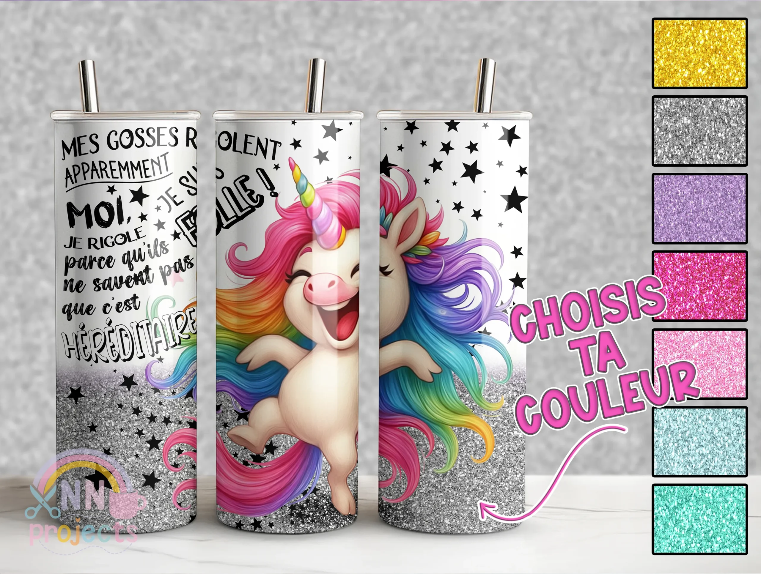 Avec sa licorne colorée et son message plein d’autodérision, il apporte une touche pétillante à chaque pause boisson.