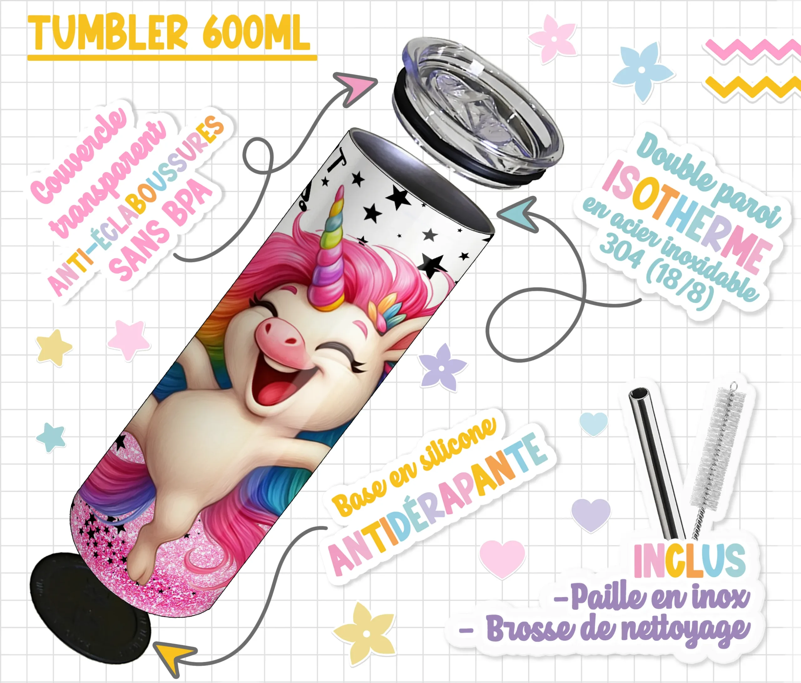 | Inclus | brosse, Couvercle, Paille en inox |